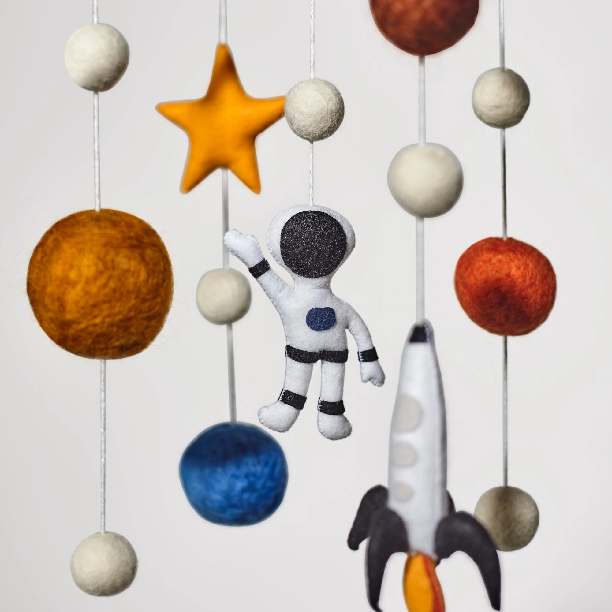 Our mobiles are handcrafted and hand-assembled by artisans in Brazil from wood, felt and locally-sourced wool. Each one comes thoughtfully packaged in a Nestig gift box.